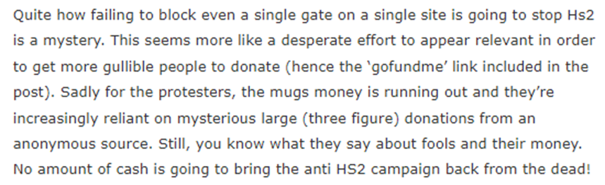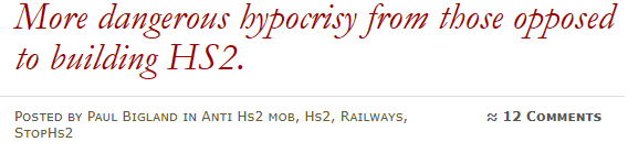 If there’s one thing Paul M Bigland seems to love, it’s accusing HS2 opponents of being hypocrites, and he posts such accusations regularly, as below:
