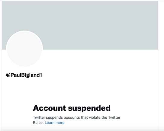 Yes, that’s right. According to first hand eye-witnesses, Paul M Bigland took offence to the grieving family, who were justifiably upset because HS2 had damaged their child’s memorial wood. Paul (in full HS2 sycophant mode) took it upon himself to harass and abuse the grieving family, to the point where bystanders reported him to Twitter, and his profile was permanently suspended.